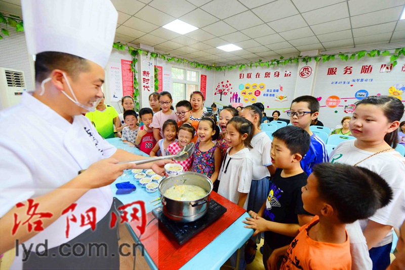 ? ? 近日,澗西區重慶路第二社區,參加“我跟大廚學做飯”活動的小學生們正在老洛陽面館專業廚師的指導下學習洛陽名吃——漿面條的制作。許多小朋友現場摩拳擦掌,表示要回家給父母做出可口的飯菜。