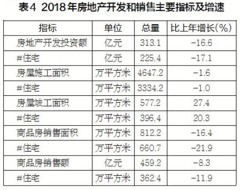 全年房地產開發投資313.1億元,比上年下降16.6%,其中住宅投資225.4億元,下降17.1%。商品房銷售面積812.2萬平方米,下降16.4%;商品房銷售額459.2億元,下降8.3%。