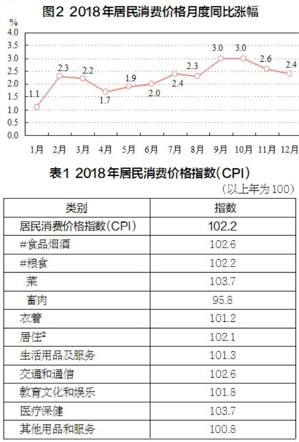 全年居民消費價格比上年上漲2.2%,漲幅比上年擴大1.2個百分點。其中,食品煙酒價格上漲2.6%,非食品煙酒價格上漲2.1%,消費品價格上漲2.1%,服務項目價格上漲2.5%。