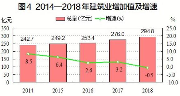 全年建筑業增加值294.8億元,比上年下降0.5%。資質內建筑業企業628家,比上年增加6家。
