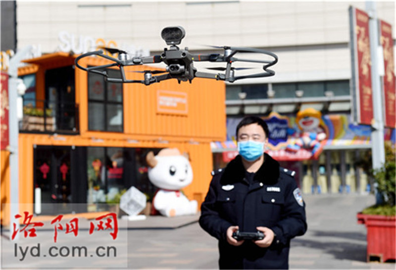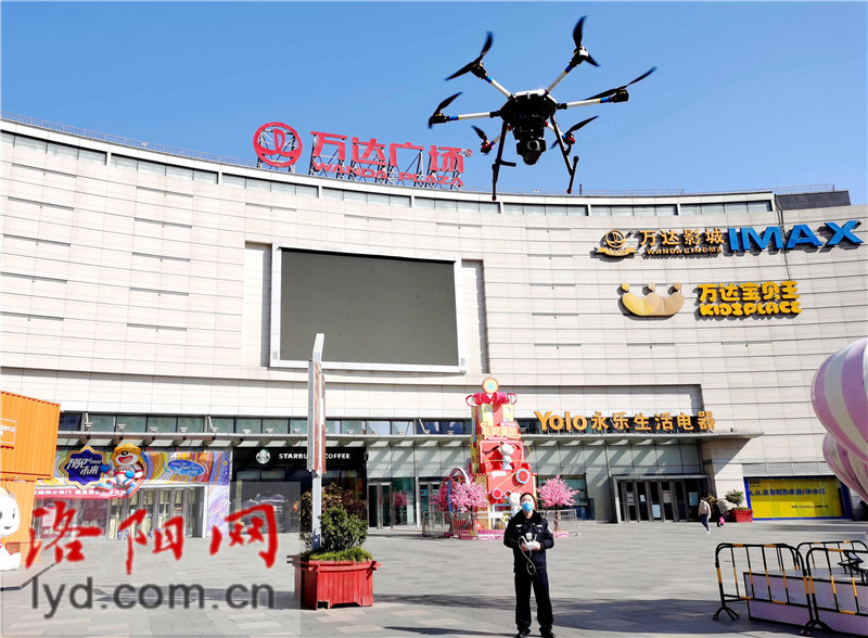? ? 今日,在澗西區萬達廣場,市公安局長春路分局的民警正在操控無人機在轄區進行疫情防控知識宣傳。