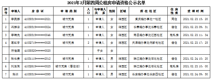 2021年2月第四周公租房申請資格公示名單
