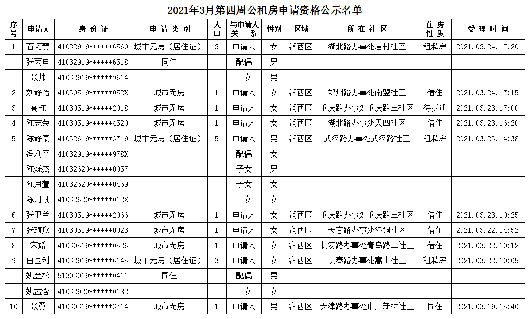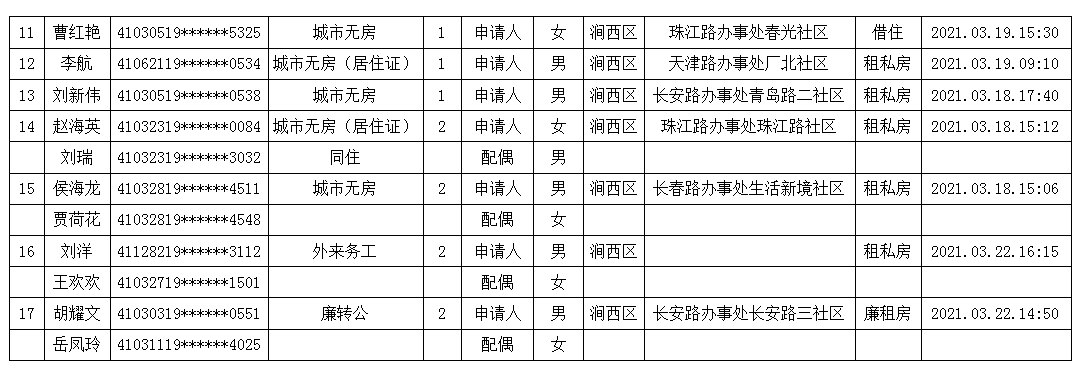 2021年3月第四周公租房申請(qǐng)資格公示名單