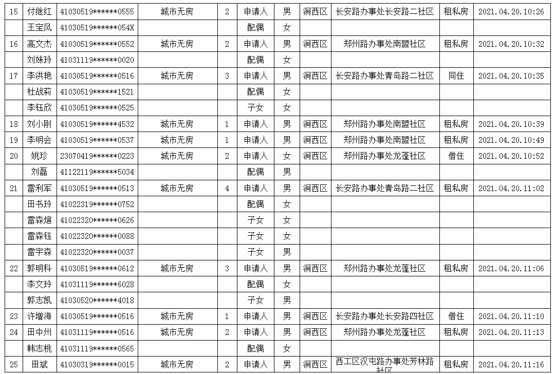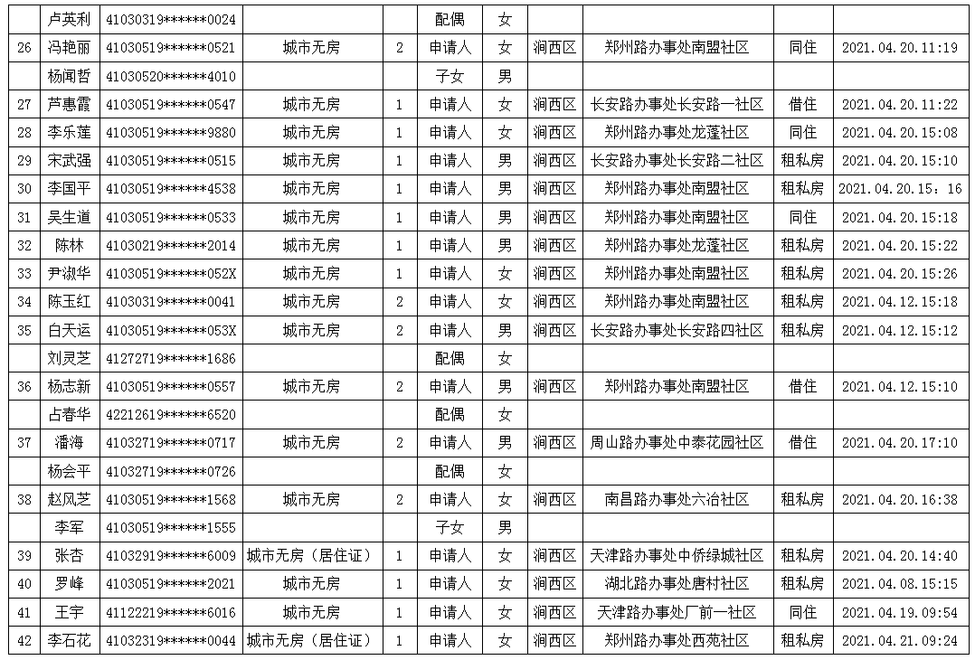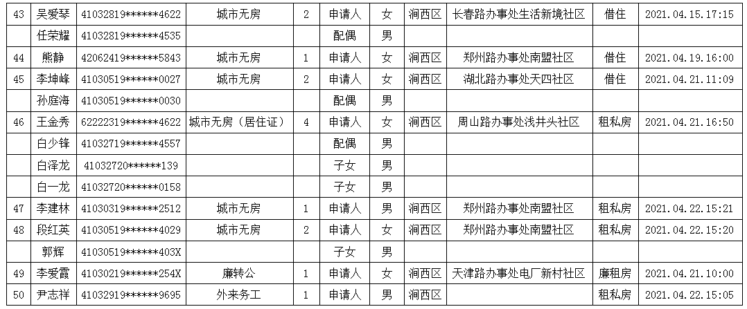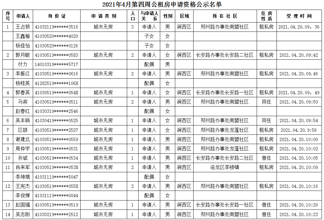 2021年4月第四周公租房申請資格公示名單