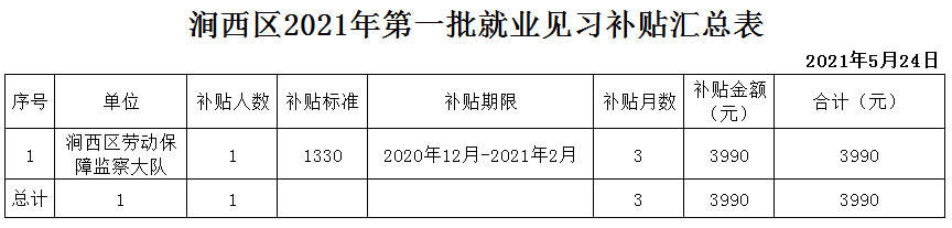 根據(jù)《關(guān)于印發(fā)河南省就業(yè)補(bǔ)助資金管理辦法的通知》(豫財(cái)社〔2018〕8號(hào))文件精神,經(jīng)審核給予見習(xí)單位“澗西區(qū)勞動(dòng)保障監(jiān)察大隊(duì)”撥付就業(yè)見習(xí)補(bǔ)貼3990元(具體見附表)。 現(xiàn)將名單予以公示,公示期2021年5月24日-2021年5月28日,歡迎社會(huì)各界予以監(jiān)督。監(jiān)督電話:64823667。