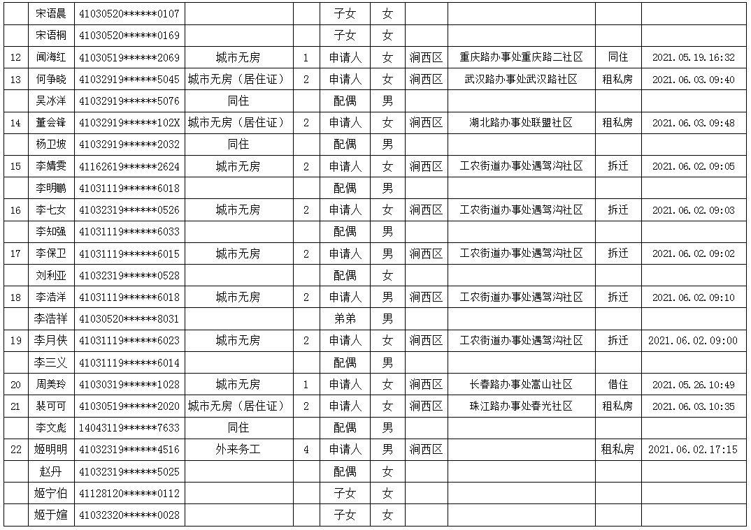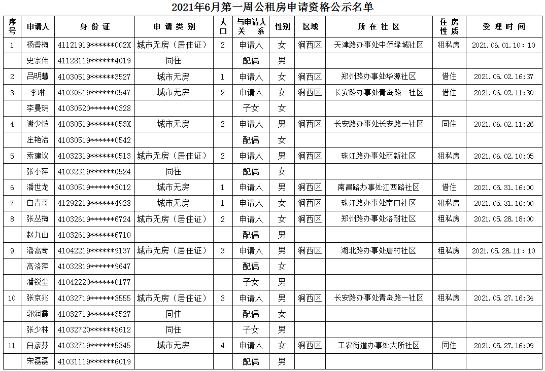 2021年6月第一周公租房申請(qǐng)資格公示名單