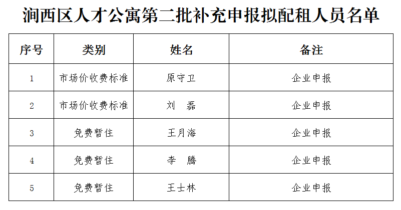 根據(jù)《洛陽市澗西區(qū)人才公寓使用管理辦法(試行)》和《洛陽市澗西區(qū)人才公寓申報公告》,經(jīng)申請、受理、審核并向區(qū)委人才工作領(lǐng)導(dǎo)小組報告,現(xiàn)將第二批補(bǔ)充申報擬配租人員名單予以公示(名單見附表)。