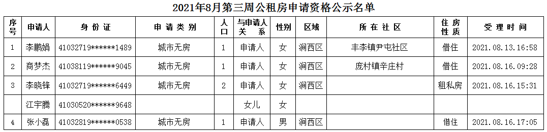 2021年8月第三周公租房申請資格公示名單