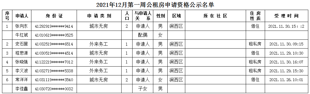 2021年12月第一周申請(qǐng)資格公示名單