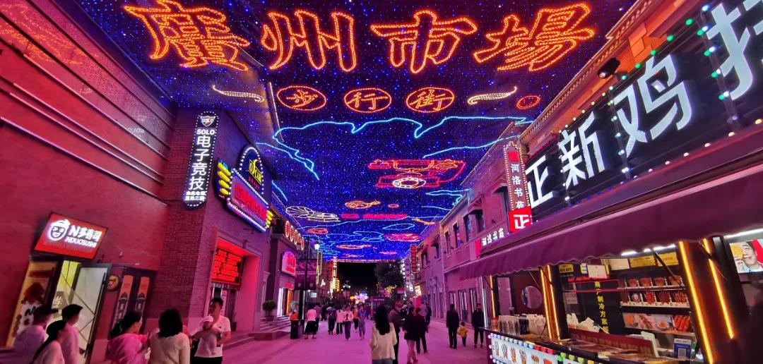 洛陽市廣州市場步行街位于澗西區景華路,采用“廣州街、民國風”的建筑風格,將中式與歐式、古典與現代相結合,打造出街區復古與時尚、典雅與現代交相輝映的形象。街區整體按照“民國井巷”風格,形成了精致餐飲、國潮文創園、澗西酒吧街、夜澗集市、運動街區、沉浸劇場六大休閑娛樂板塊。街區增設休閑文體專區常態化消費場所,打造特色體驗運動主題街區;沉浸劇場以媒體互動、實景劇場互動體驗、網紅直播等多種形式,從視覺聽覺觸覺等各方面打造街區全景沉浸式體驗。街區先后被評為“洛陽市2020年十大網紅打卡地”“河南省夜間文旅消費集聚區”“省級試點步行街”。