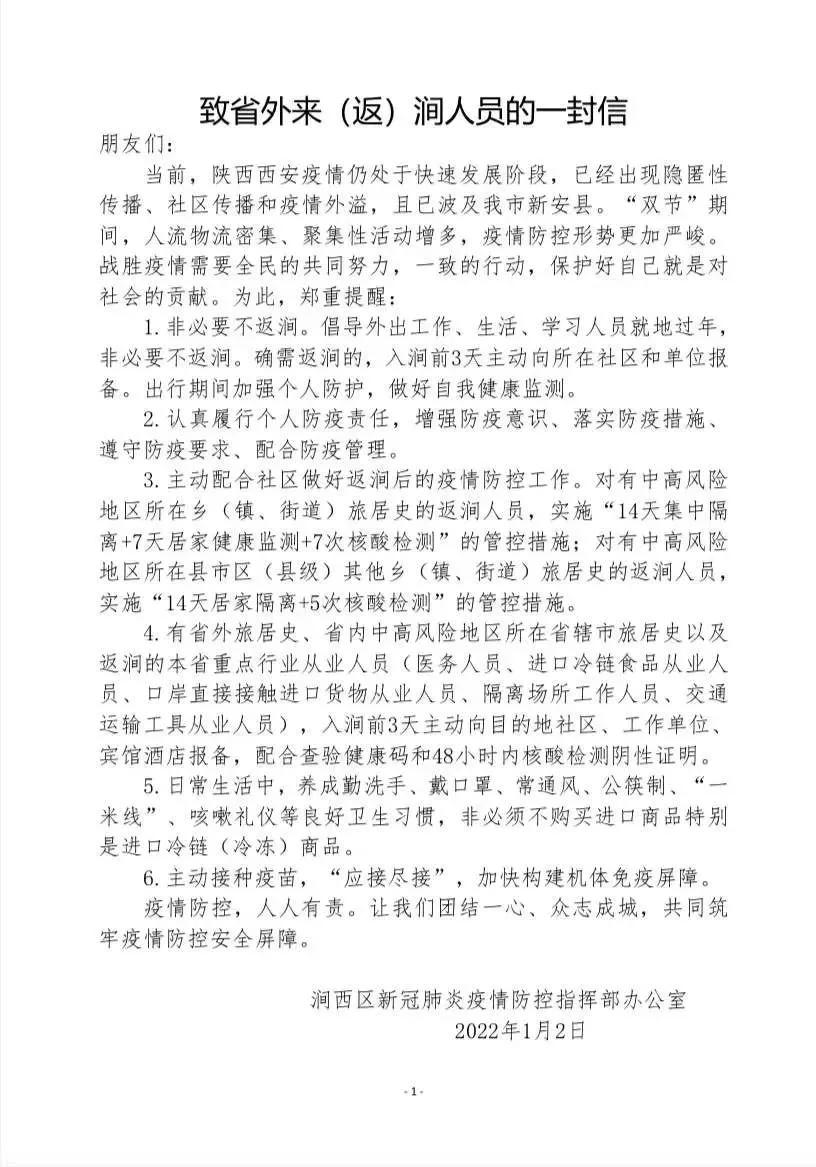 致省外來(返)澗人員的一封信