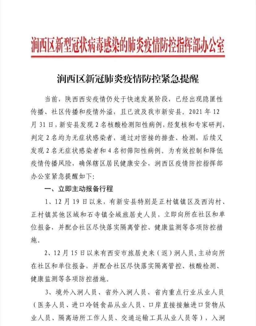 澗西區疫情防控指揮部發布緊急提醒!
