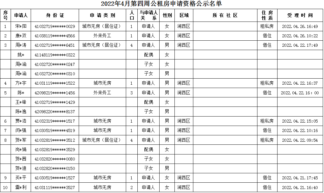 2022年4月第四周申請資格公示名單