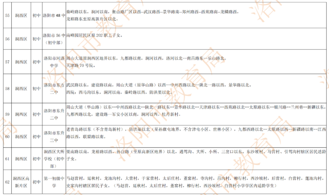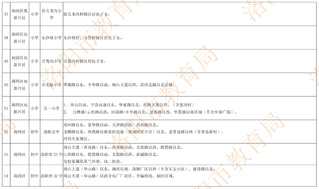 2022年澗西區(qū)(含高新)小學(xué)、初中劃片范圍