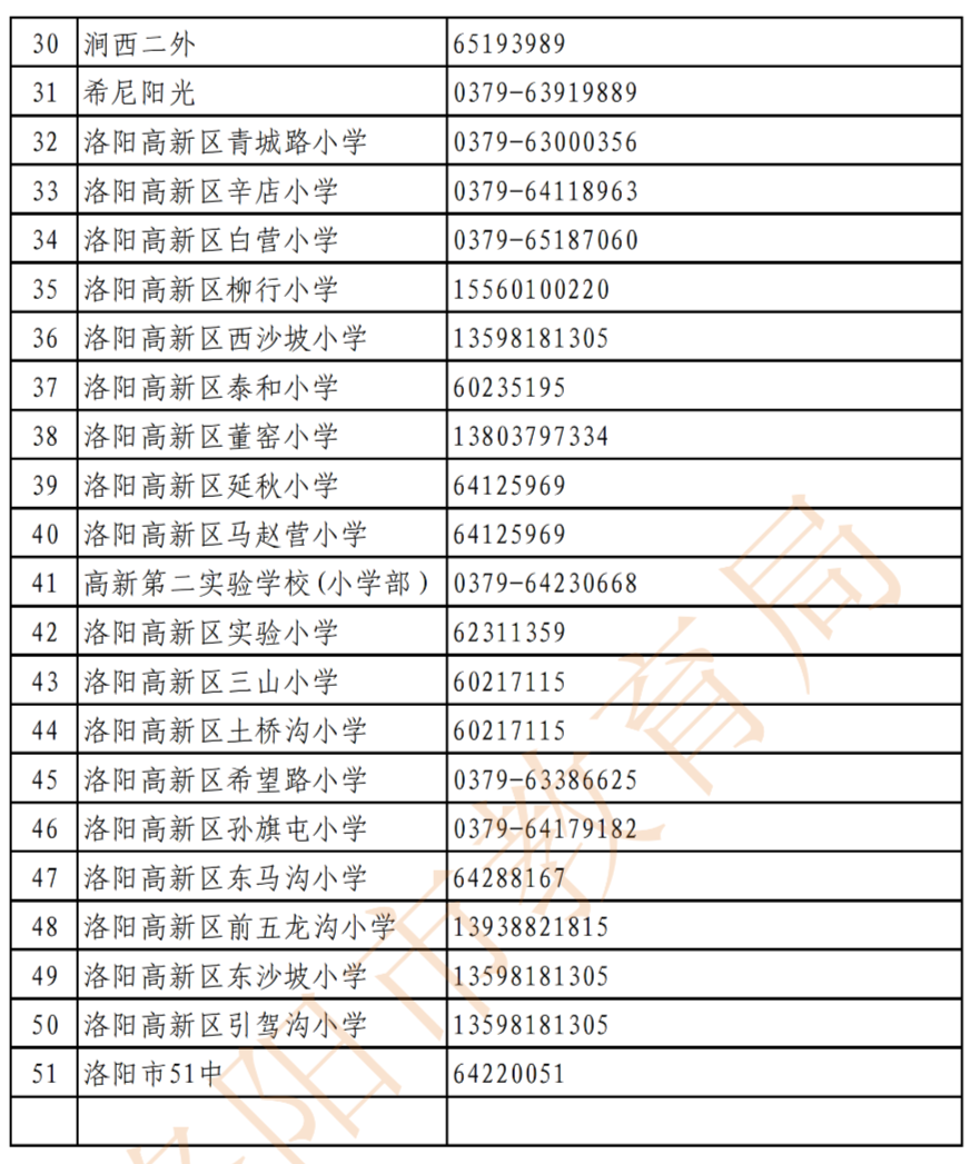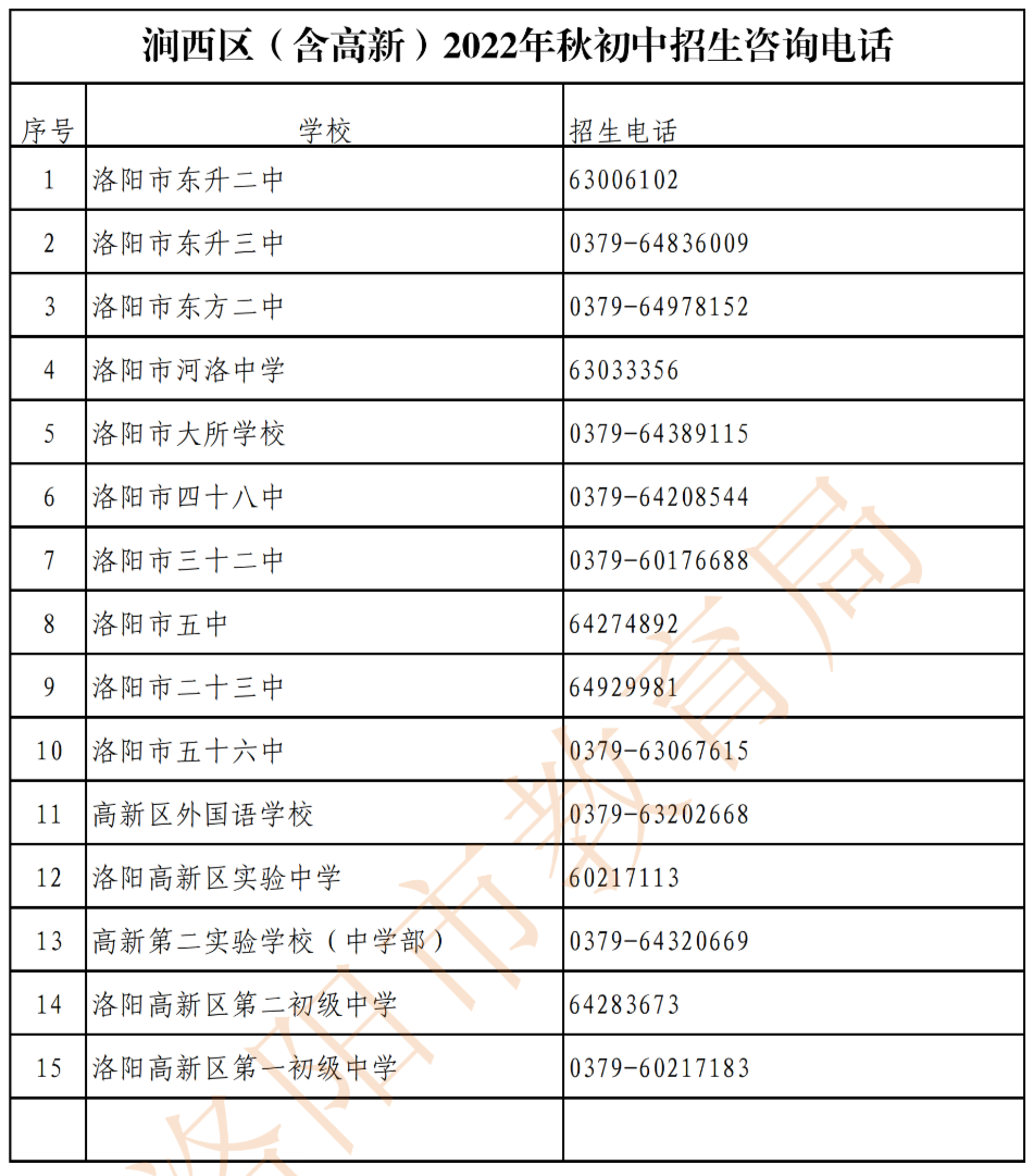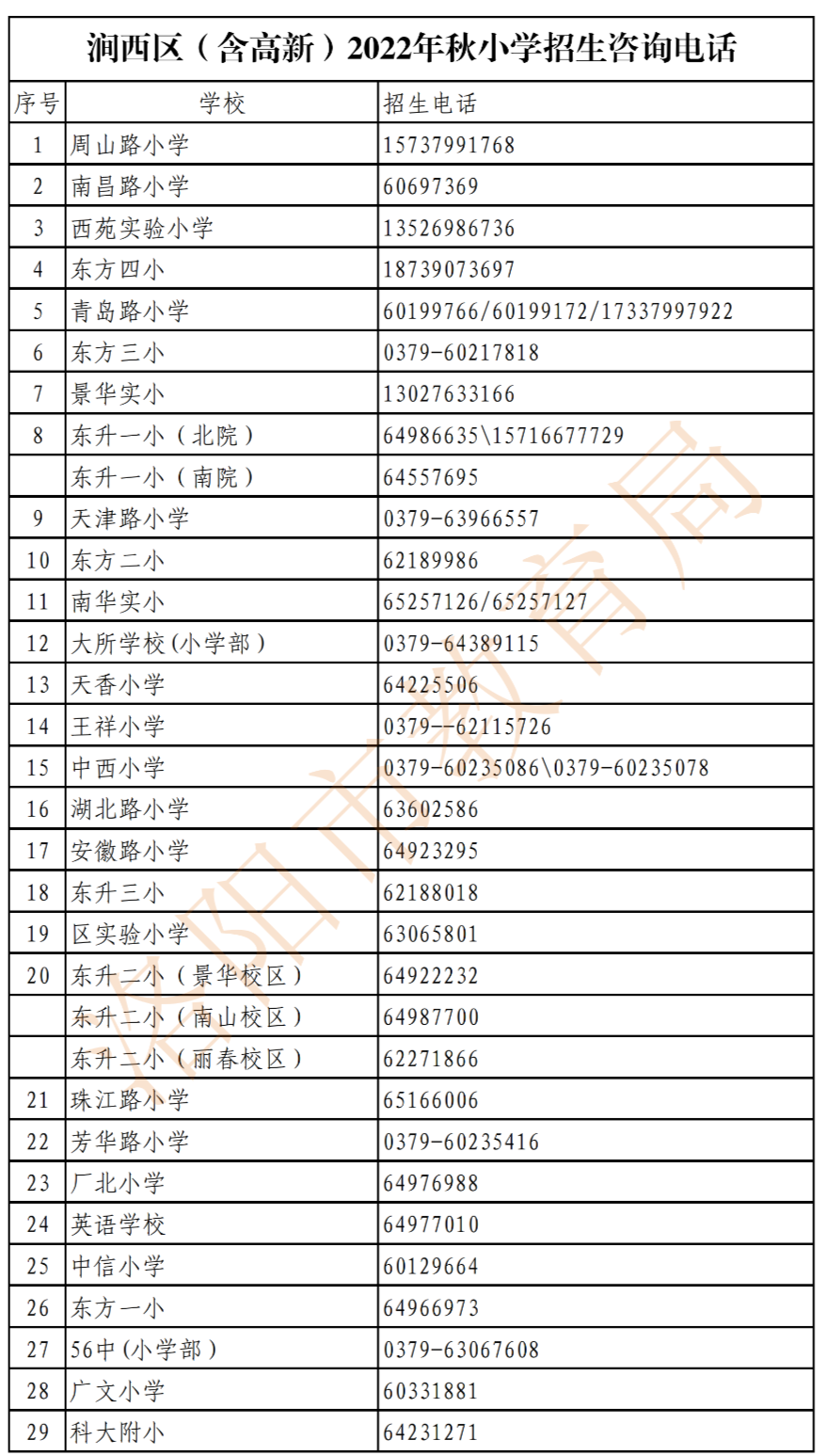 澗西區(含高新)2022年秋季小學、初中招生咨詢電話