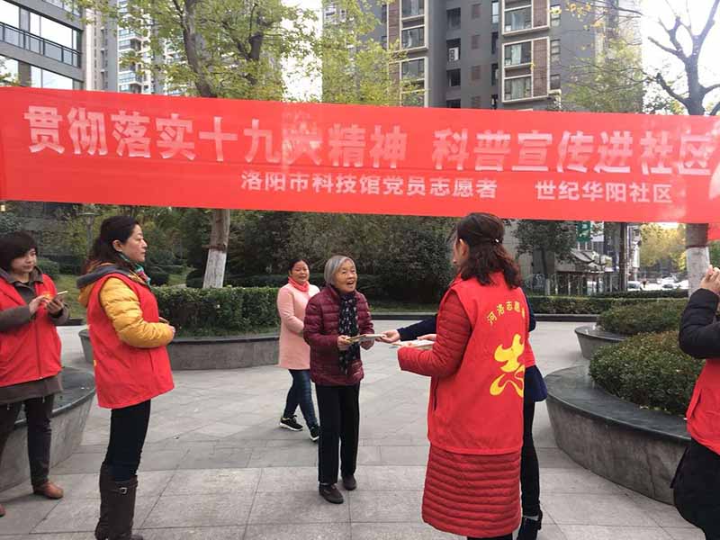 這是該社區聯合洛陽市科學技術館在社區廣場舉辦的“貫徹落實十九大 科普知識進社區”活動現場。當天,志愿者和工作人員向居民發放了《科普知識宣傳手冊》、《科學生活》等資料,并向他們講解掌握科普知識的重要性,內容豐富的科普活動吸引了眾多社區居民駐足觀看?;顒又?,工作人員還為居民發放了200余份科普宣傳材料,受理相關咨詢100余人次。