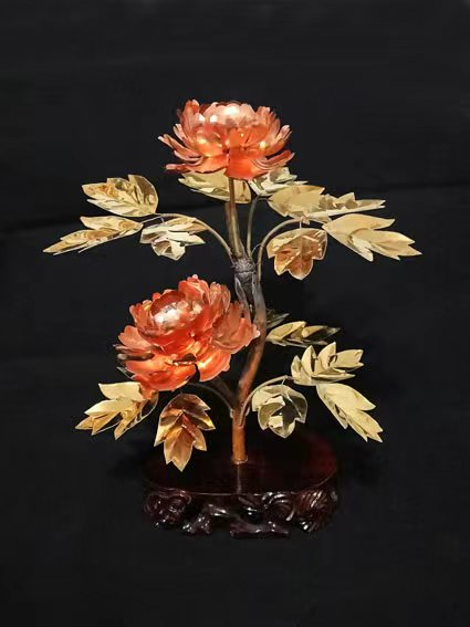 在不斷傳承創(chuàng)新的基礎(chǔ)上,王書品研發(fā)出立體金屬牡丹作品,并取得了國家發(fā)明專利。由金屬鍛造而成的一朵朵逼真的牡丹,在枝頭嬌艷綻放,在很多重要場所作為藝術(shù)品擺放。
