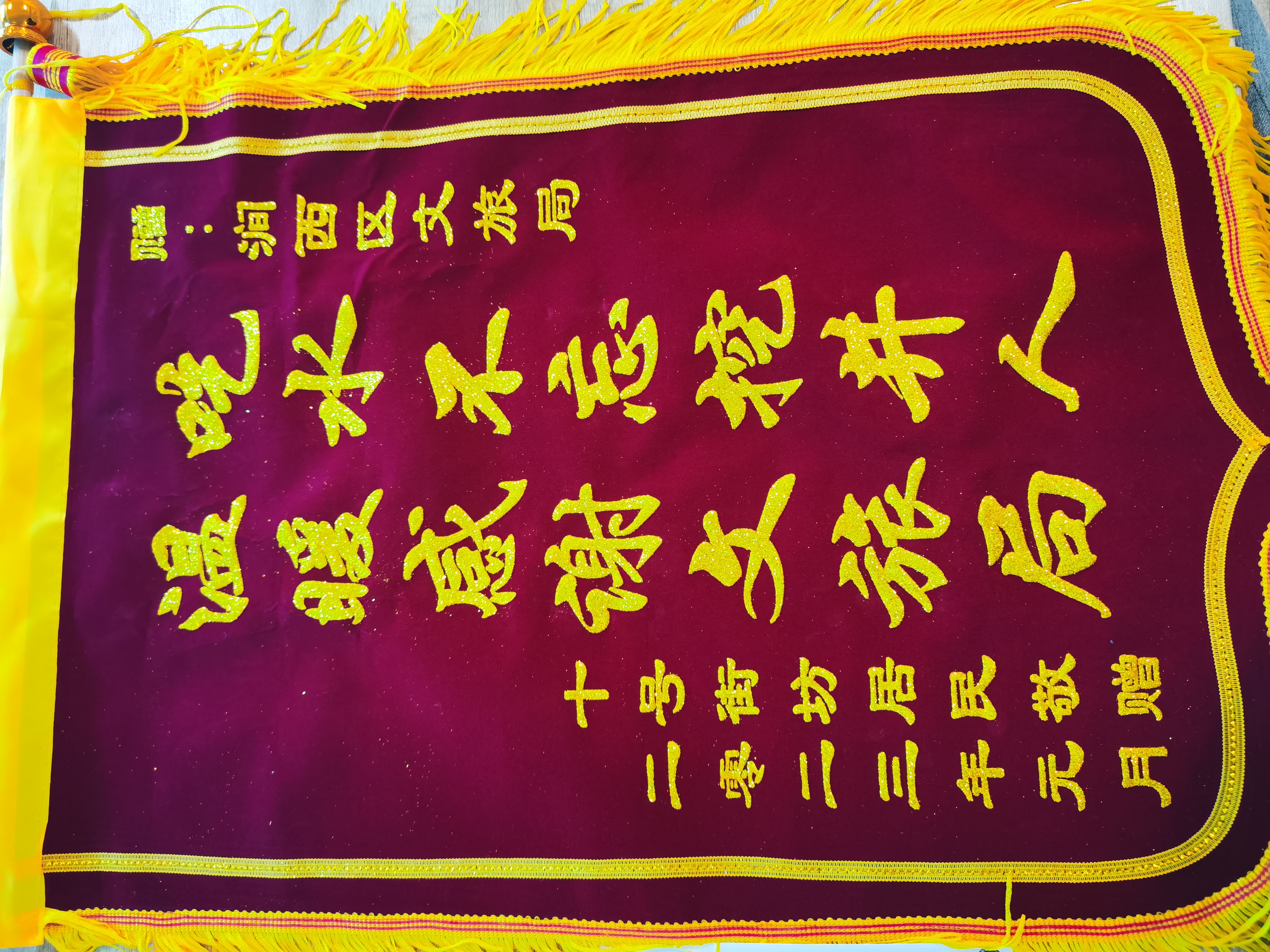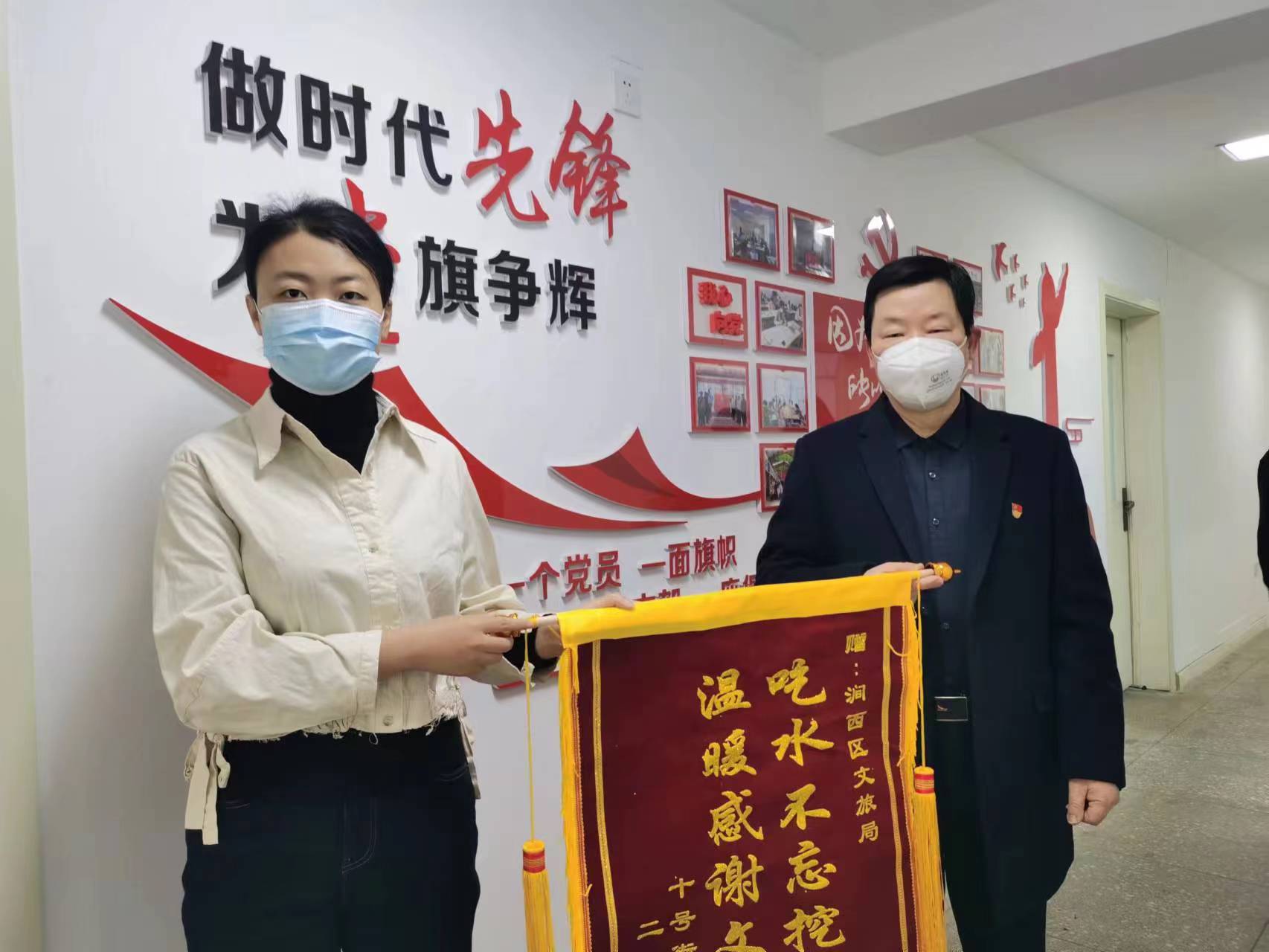 1月11日上午,蘇式建筑群十號街坊居民代表將印有“吃水不忘挖井人 溫暖感謝文旅局”的錦旗送到承擔文物修繕職能的澗西區(qū)文旅局,表達感激之情。