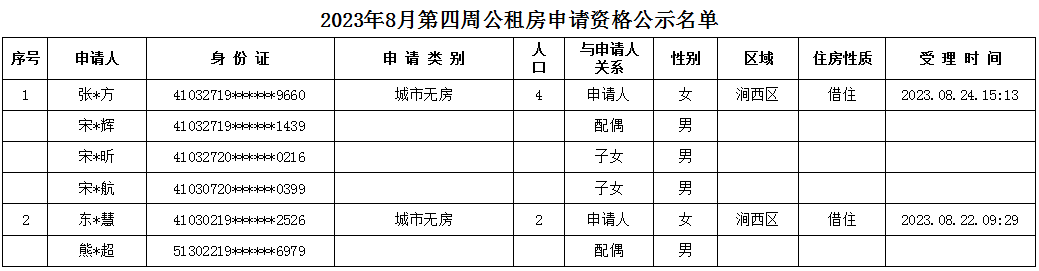 2023年8月第四周申請資格公示名單