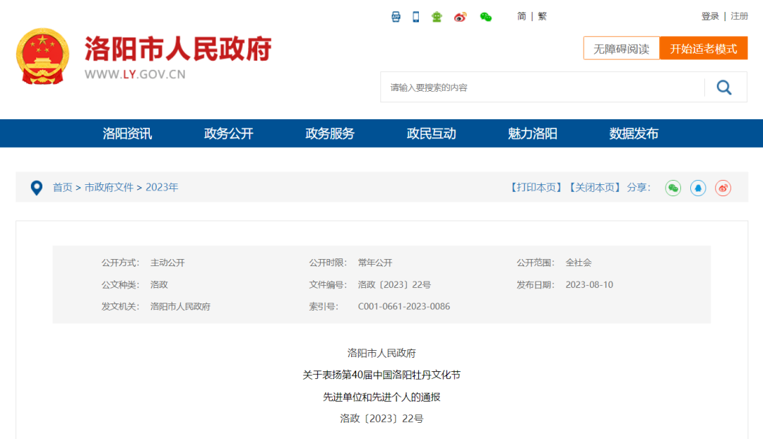 為表揚先進,進一步發(fā)揮示范引領作用,激勵各縣區(qū)、各部門主動擔當作為,推動形成改革創(chuàng)新、干事創(chuàng)業(yè)的生動局面,近日,洛陽市政府發(fā)布《關于表揚第40屆中國洛陽牡丹文化節(jié)先進單位和先進個人的通報》(洛政〔2023〕22號),對在本次牡丹文化節(jié)中表現突出的30個先進單位、80名先進個人予以表揚,其中,澗西區(qū)文化和旅游局(先進單位)光榮上榜。