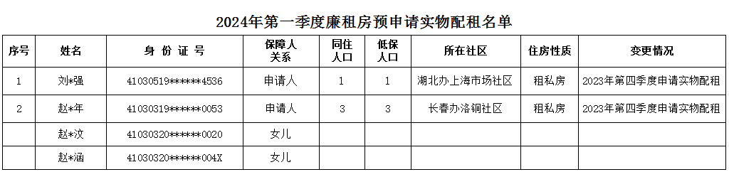 2024第一季度廉租房預(yù)申請(qǐng)實(shí)物配租名單