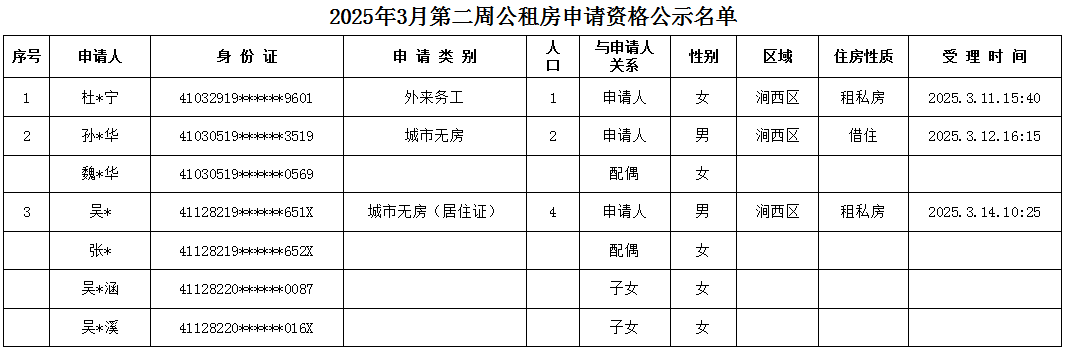 20253月第周公租房申請資格公示名