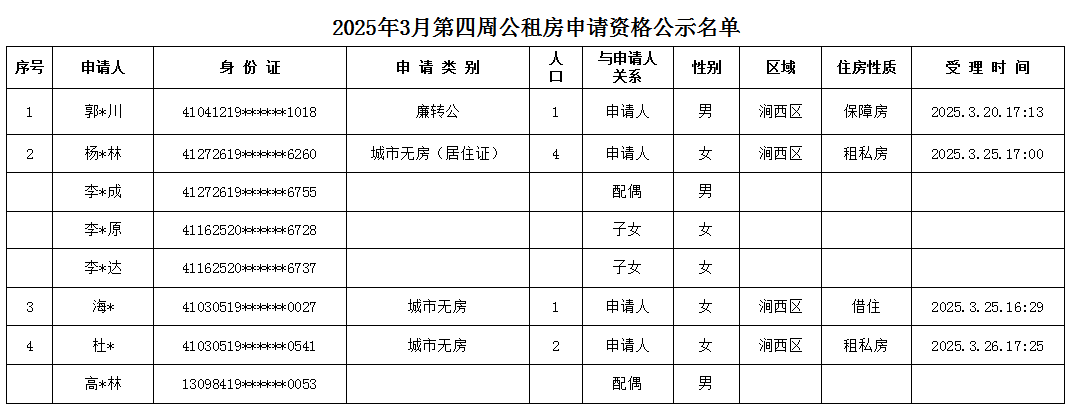 2025年3月第四周公租房申請資格公示名單
