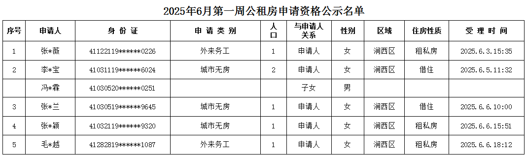2025年6月第一周公租房申請(qǐng)資格公示名單