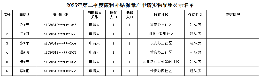 2025年第二季度廉租保障資格公示名單