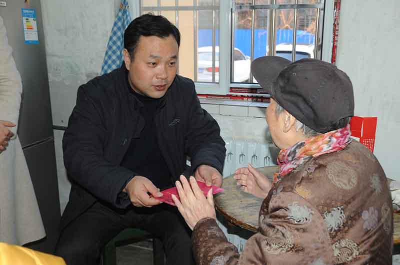 ▲在新春佳節即將到來之際,澗西區委副書記、區長周玉甫一行先后來到離休老干部任執中、馬附驥,以及長安路辦事處長三社區困難居民李桂英、王蓮明等家中,為他們送去了新春的問候和祝福。