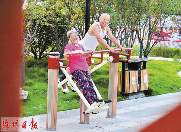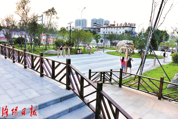 ?在新建成的澗西區(qū)秦嶺路街頭游園,不少居民在此健身休閑。