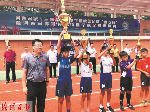 ??? 日前,河南省第十三屆運(yùn)動(dòng)會(huì)學(xué)生組校園足球“省長(zhǎng)杯”暨河南省體育傳統(tǒng)項(xiàng)目學(xué)校足球錦標(biāo)賽順利閉幕,澗西區(qū)西苑路實(shí)驗(yàn)小學(xué)男子足球隊(duì)勇奪小學(xué)男子組冠軍。