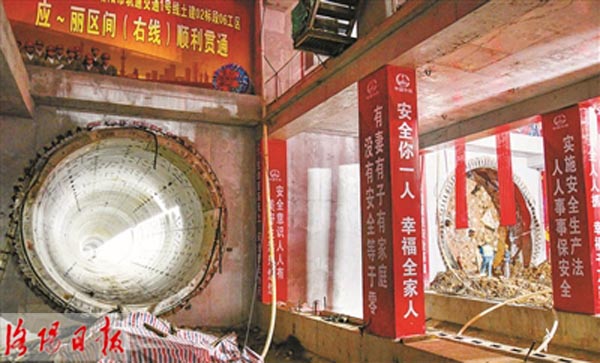 26日晚,“牡丹14號”盾構機在麗景門站北線隧洞“露出真容”,標志著1號線應天門站至麗景門站區間實現南北“雙洞貫通”。(見上圖)該隧洞全長780余米,“牡丹14號”盾構機今年7月5日從應天門站始發,于10月26日晚完成任務。此前,該區間南線隧洞由“牡丹13號”盾構機在9月底打通。