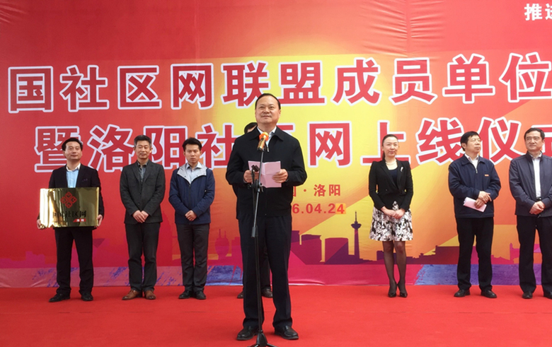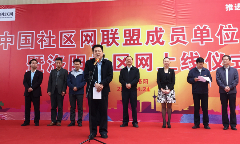 4月24日上午,中國社區網聯盟成員單位授牌暨洛陽社區網上線儀式在河南洛陽廣播電視中心舉行。黨的十七大、十八大代表、社區志愿服務全國聯絡總站執行副總站長、中國社區網編委會執行副主任王波,中國社區網總編輯、中民城鄉社區發展研究院秘書長于天寶,中共洛陽市委常委、宣傳部長楊炳旭,洛陽市委宣傳部副部長、市文明辦、創建辦主任谷連民,洛陽市廣播電視臺總編輯賈洪濤,洛陽市創建辦副主任劉樂意和市直單位有關領導出席上線儀式。洛陽市各城區宣傳部副部長、文明辦主任,部分街道和社區代表,洛陽市部分社區志愿服務隊代表近400人參加儀式。洛陽市委宣傳部副部長、市文明辦、創建辦主任谷連民主持儀式。